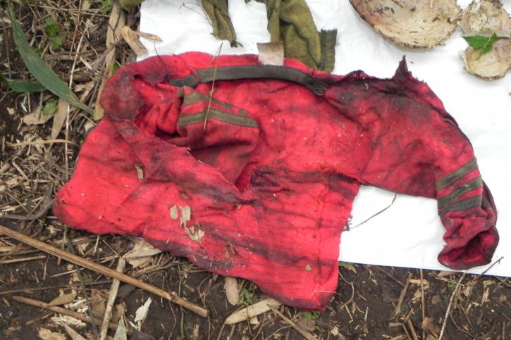 Quando chegaram ao local, os peritos do instituto de criminalística e os investigadores da policia civil, com o auxilio de indígenas, acharam mais alguns pequenos pedaços de ossos, inclusive ossos de uma arcada dentária, cabelos, uma blusa verde onde se fez um nó, e uma jaqueta. O intrigante é que não achou-se nenhum pedaço de ossos de outras parte do corpo.