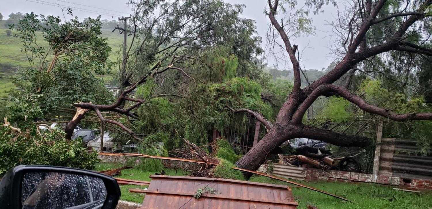 O município de Nova Laranjeiras, no centro Sul do Estado, foi atingido por um temporal na tarde desta quinta-feira (22). Fortes ventos e chuva foram registrados na cidade deixando muitos estragos na cidade e no interior. Árvores e postes caíram, telhados de casas foram arrancados com intensidade do vento. Também foram registrados alagamentos em várias ruas por conta do volume excessivo de água.
