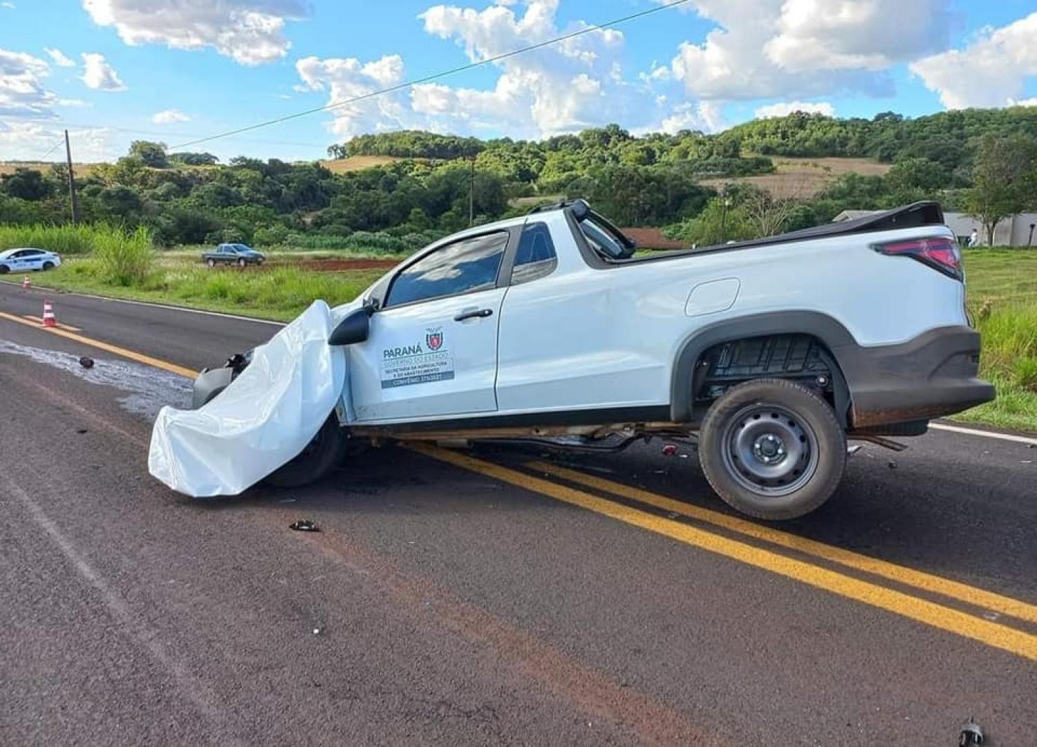 Uma pessoa morreu e outra ficou gravemente ferida em um acidente registrado na tarde desta terça-feira (11) na PR-886, em Santa Izabel D’Oeste, na região Sudoeste do Paraná. As vítimas eram ocupantes de uma camionete Fiat Strada de propriedade da Prefeitura de Santa Izabel. O utilitário bateu de frente com outra camionete, uma S-10.
