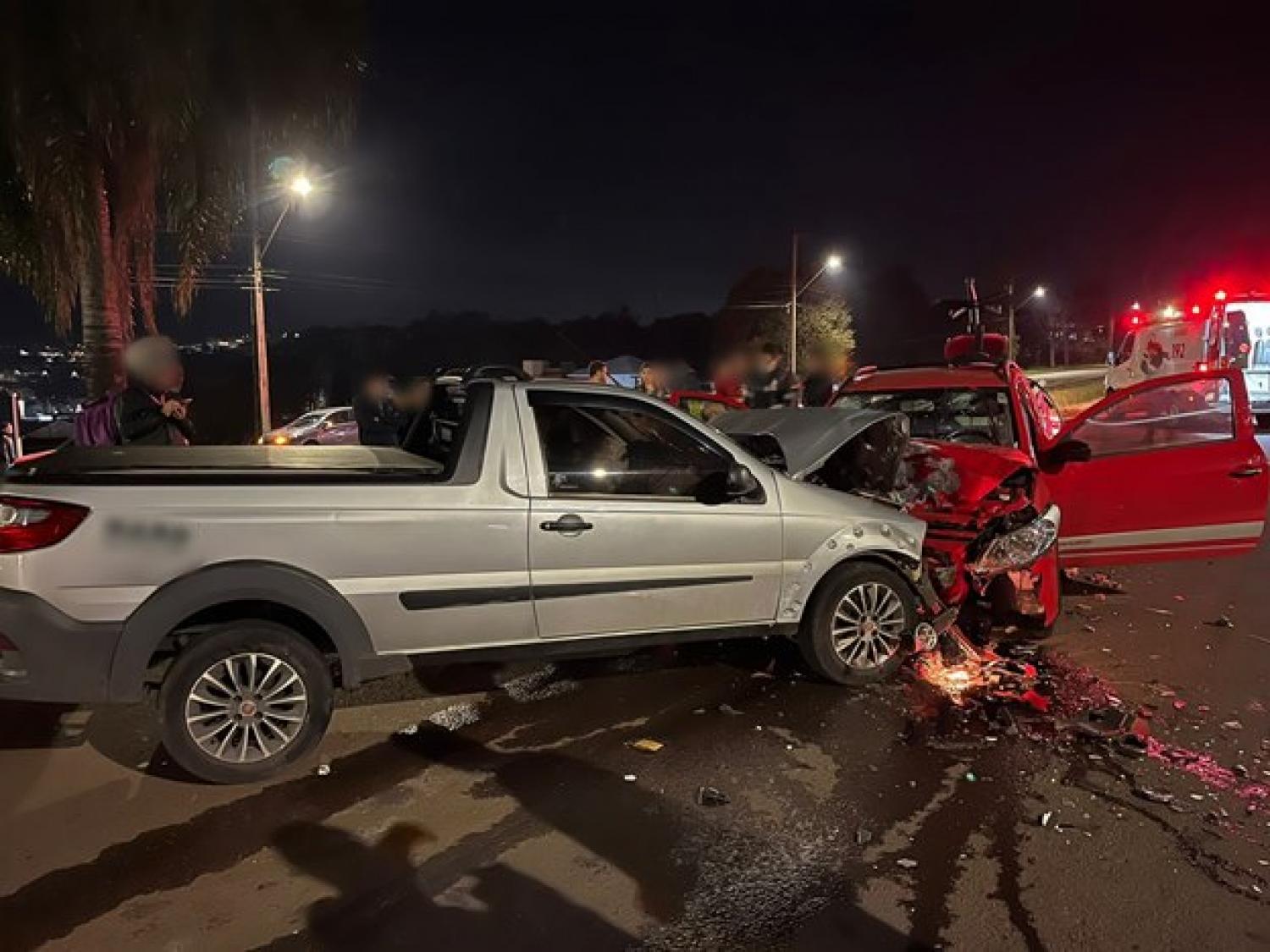 O acidente foi registrado na noite de domingo (16) por volta de 22h na marginal da rodovia BR-158 em Pato Branco, perímetro urbano, envolvendo numa colisão, uma VW/Saveiro e uma Fiat/Strada.