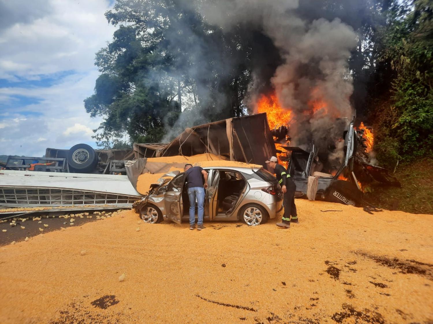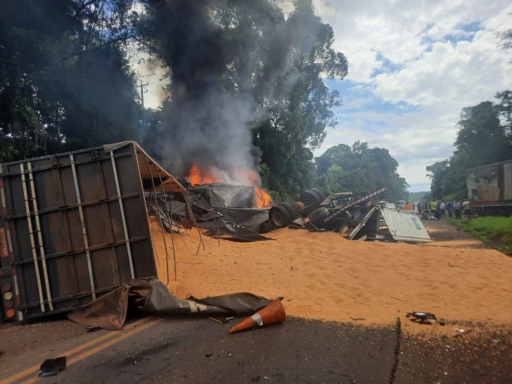 Informações extraoficiais indicam que um dos caminhões incendiou. O acidente teria provocado a morte de duas pessoas e outras quatro ficaram feridas.