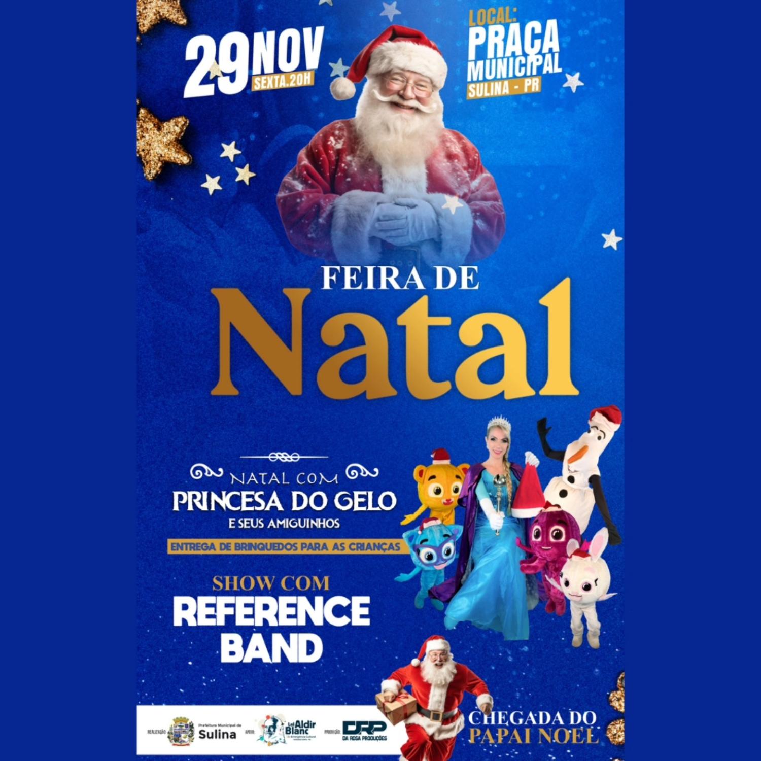 Haverá apresentação do Natal com a Princesa do Gelo e Seus Amiguinhos, e logo após show com Reference Band.