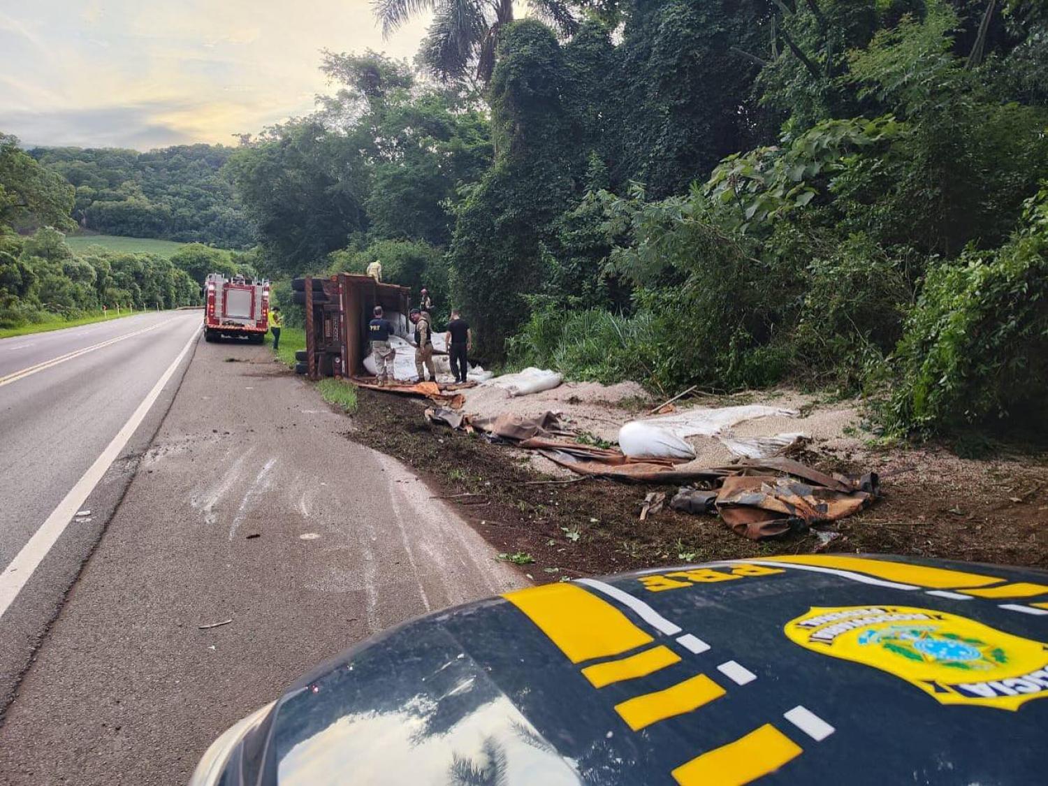 De acordo com a Polícia Rodoviária Federal, a vítima de 44 anos conduzia um caminhão que tracionava uma carreta carregada com fertilizantes e tombou no km 406 da rodovia. O motorista, morador de Santa Helena (PR), entrou em óbito no local do acidente.