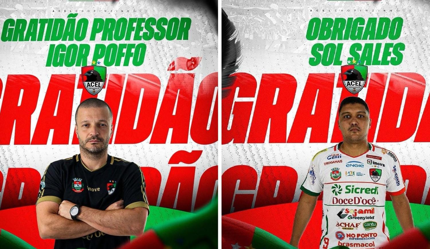 Nesta segunda feira, dia 24, a diretoria da Acel anunciou o desligamento do técnico Igor Poffo e do ala Sol Sales. As mudanças ocorrem num momento de instabilidade da equipe que não começou bem o Campeonato Paranaense de Futsal, série ouro, no qual, em três jogos disputados a equipe não somou nenhum ponto.