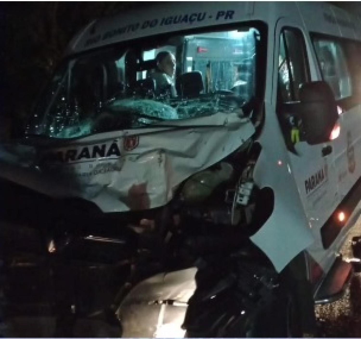 Os veículos envolvidos foram: Um caminhão Scania de cor azul e emplacamento de Chopinzinho (PR) e uma Van da saúde do município de Rio Bonito do Iguaçu (PR).
