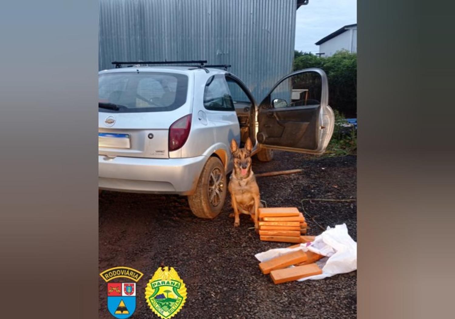 Ao ser dada voz de abordagem o condutor iniciou uma fuga por alguns quilômetros, quando entrou em uma área de mata e tentou fugir com uma sacola tentando se desfazer de tabletes de maconha, que foram encontrados pela cadela de faro, K9 Aika, e após pesadas totalizou 20 kg de maconha.