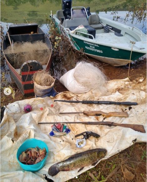 A Polícia Ambiental reforça que a pesca predatória, a caça de animais silvestres e o porte ilegal de armas são crimes previstos na legislação brasileira e seguem sendo combatidos com rigor.