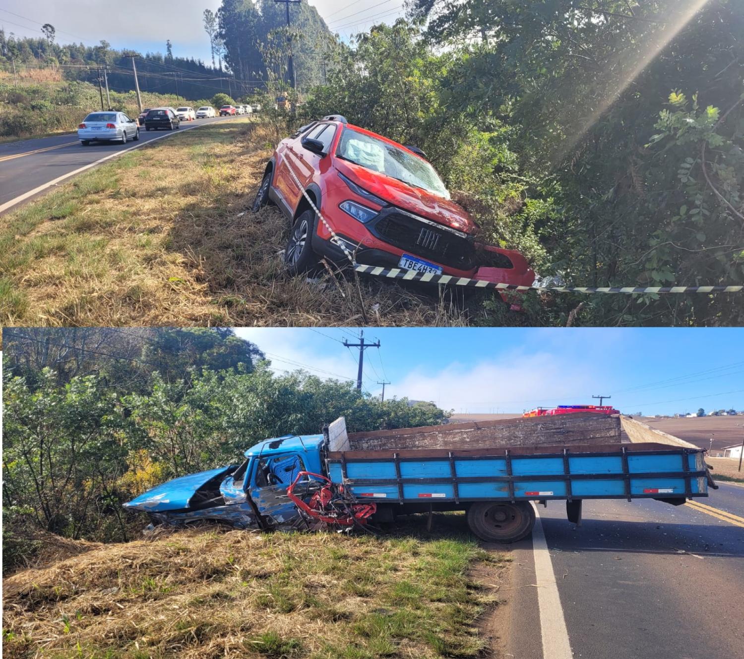A colisão ocorreu na conhecida curva da Campinas e envolveu uma caminhonete Fiat Toro vermelha placas de Chopinzinho conduzida por Tony Orias e uma F-4000 azul, de Saudade do Iguaçu, conduzida por Ademar Forgiarini, conhecido por Ade.