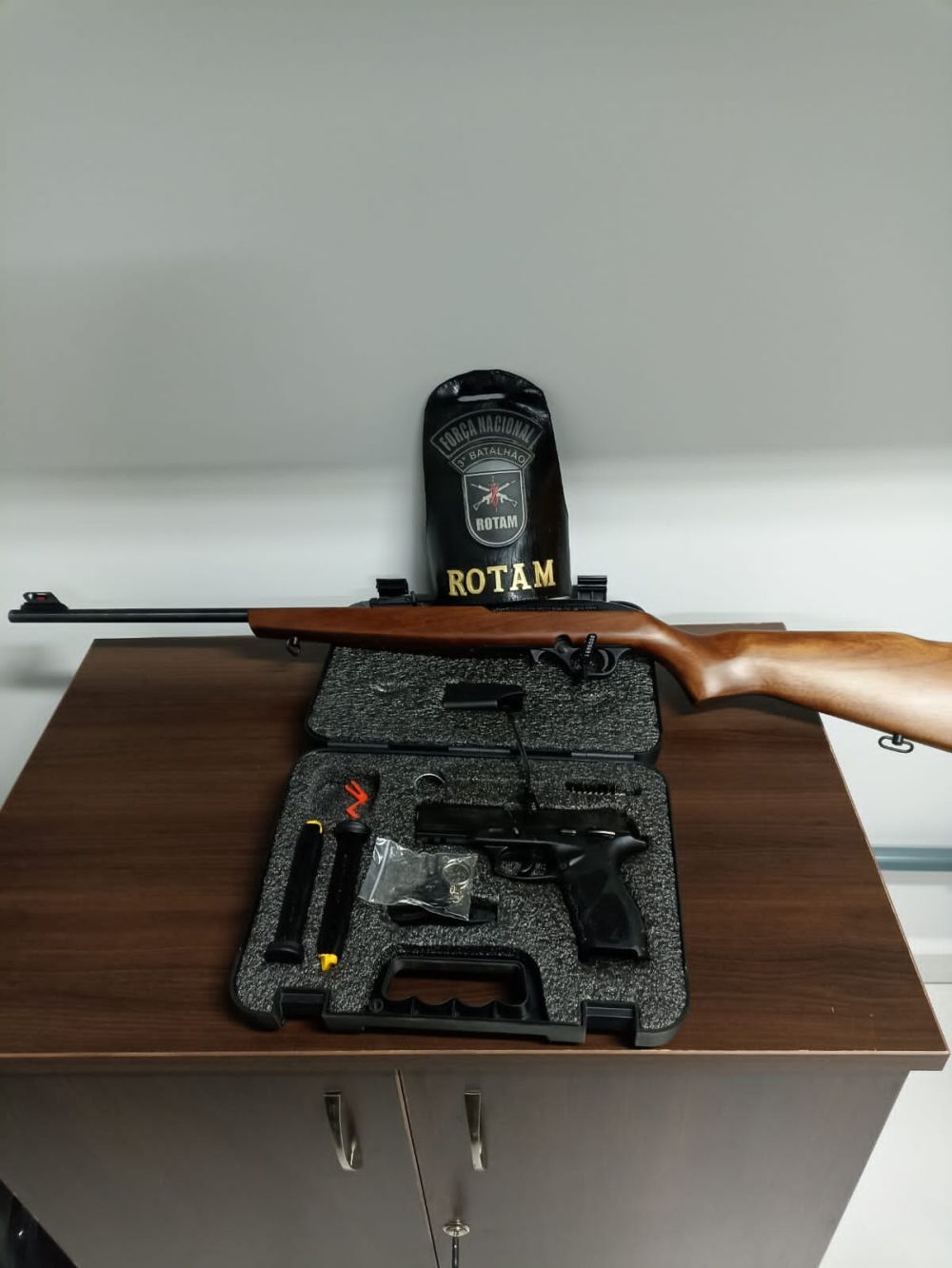 Além dos produtos contrabandeados, a ação resultou na descoberta de armamento. Dentro de um guarda-roupa, foi encontrada uma espingarda calibre .22 com dois carregadores desmuniciados e 143 munições intactas do mesmo calibre. Próximo a um televisor, uma pistola Taurus 9mm foi localizada em uma maleta, contendo dois carregadores desmuniciados e 10 munições intactas. Um recipiente com R$ 712,00 em dinheiro e R$ 22,00 em moedas também foi apreendido.
