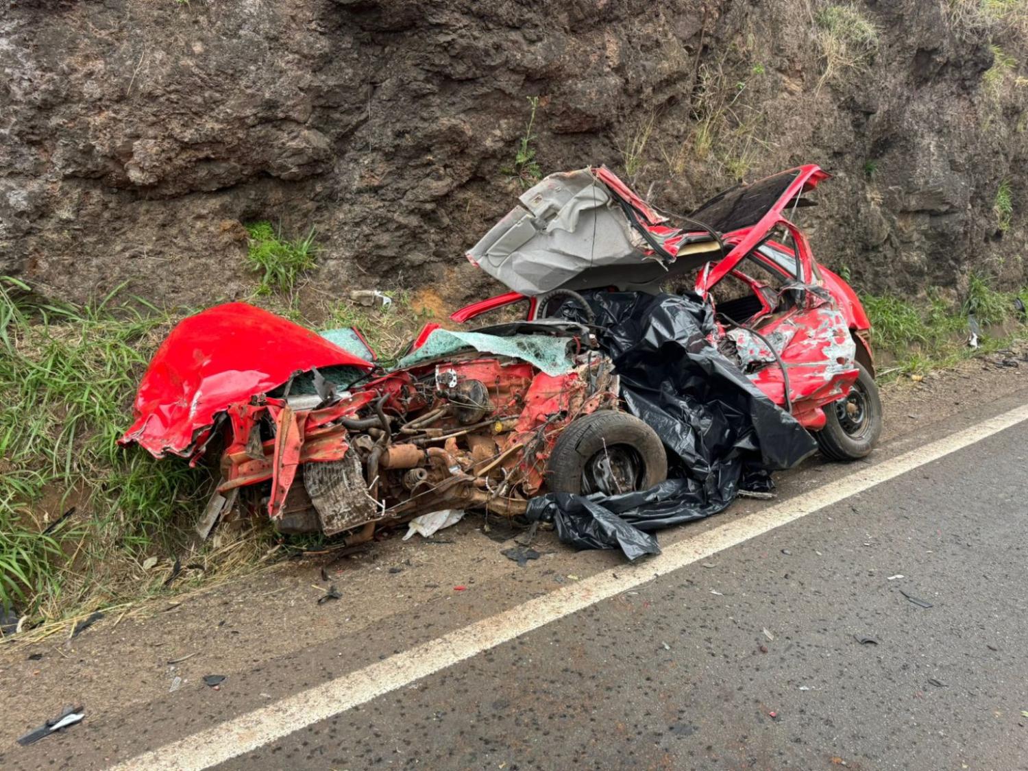 Com o impacto, o Gol foi jogado contra o caminhão e ficou completamente destruído. No trecho em que o acidente aconteceu, há pista dupla no sentido a Francisco Beltrão ? subida, enquanto no sentido contrário é pista simples com faixa contínua ? proibido ultrapassar.