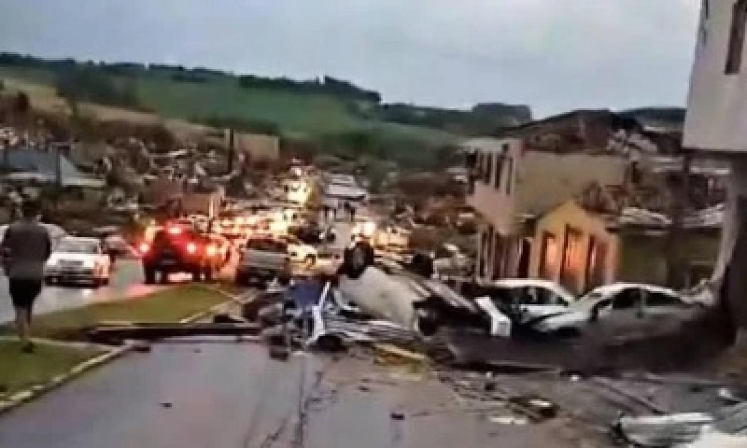 Moradores relataram que o tornado chegou com temporal, vento forte e granizo. Segundo a Defesa Civil, cerca de 80% da cidade ficou destruída, com destelhamentos e colapso estrutural de algumas construções.
