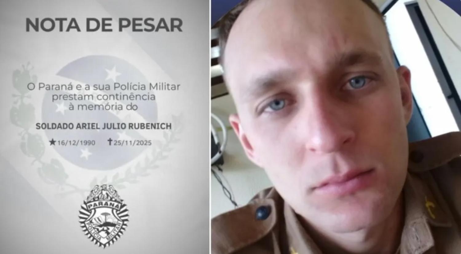 Uma tragédia foi registrada na noite de terça-feira (25) após perseguição policial na Avenida Tancredo Neves, bairro Alto Alegre em Cascavel, onde o policial militar, Ariel Júlio Rubenich, 34 anos, estava em perseguição a uma motocicleta, quando teve a motocicleta/viatura, que conduzia, fechada por um automóvel VW/Passat; O policial sofreu uma queda e acabou entrando em óbito.