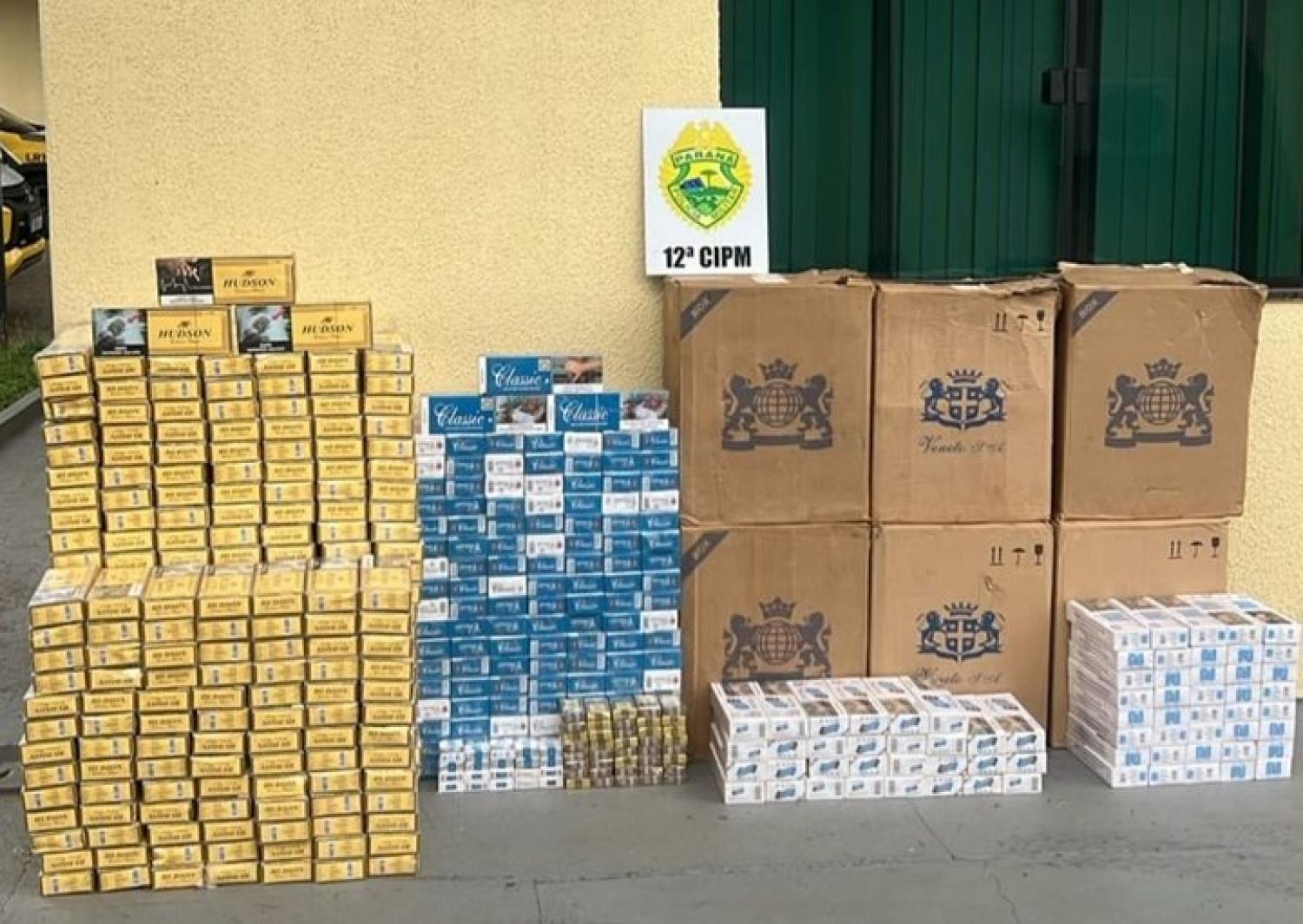 Na tarde de terça-feira (02) por volta de 14h50 a equipe Patrulha Rural da 12ª Cia Independente da Polícia Militar, realizou abordagem em um estabelecimento comercial no bairro Lagoão, Palmas (PR). No local, os policiais localizaram em um fundo falso do estabelecimento, 915 pacotes de cigarros de origem paraguaia, configurando crime de Contrabando previsto no Artigo 334 do Código Penal.