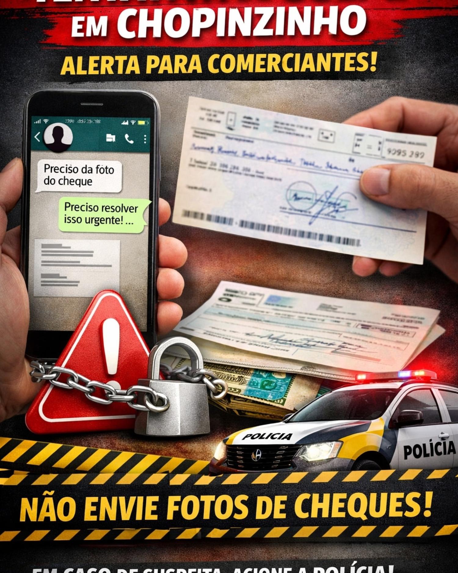 Diante da situação, a orientação é para que comerciantes não enviem fotos de cheques ou qualquer outro documento, não forneçam dados bancários ou pessoais e desconfiem de contatos não confirmados. Em caso de abordagem suspeita, a recomendação é acionar imediatamente a Polícia Militar e registrar a ocorrência.