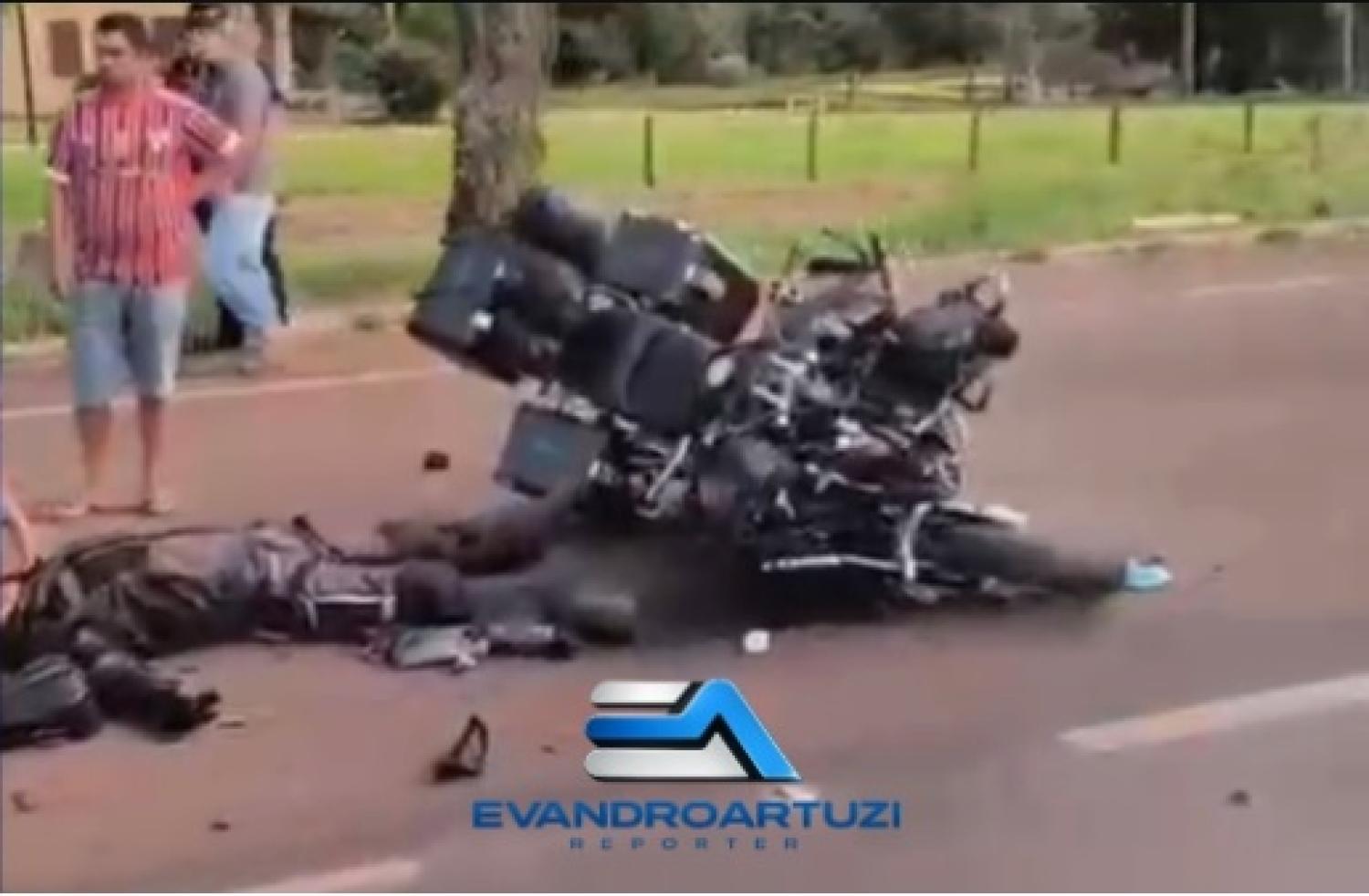 Com o impacto, a motocicleta sofreu danos de grande monta. Os dois ocupantes ? um homem e uma mulher ? ficaram feridos, com lesões consideradas de moderadas a graves.