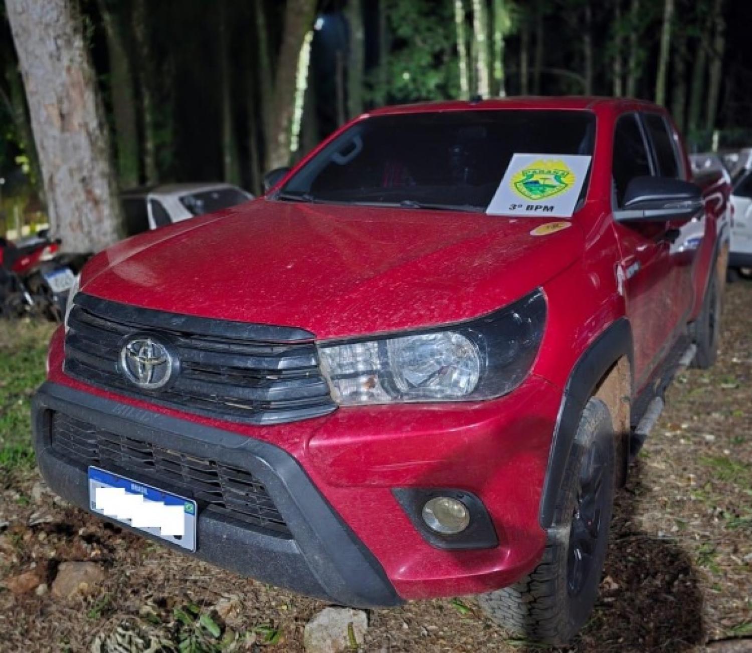 Nesta quarta feira, 18, a equipe da Patrulha Rural Comunitária realizava patrulhamento na região central de Chopinzinho quando, ao passar em frente a uma auto elétrica, visualizou uma caminhonete Toyota Hilux estacionada no pátio da oficina em situação suspeita.