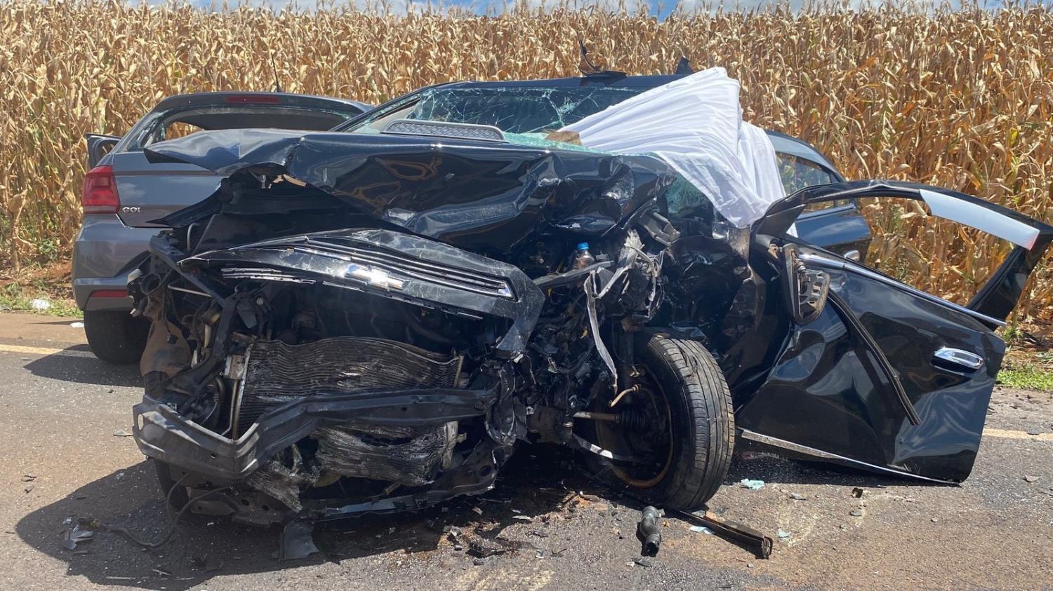 O impacto da colisão foi violento e os dois veículos ficaram completamente destruídos.