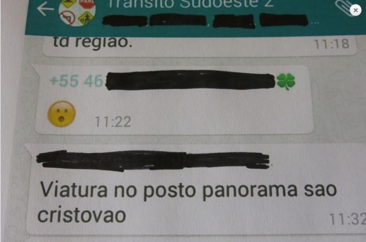 A Polícia Militar de Coronel Vivida identificou centenas de pessoas que monitoravam as viaturas policiais através de grupos do Whatsapp. Durante uma abordagem, onde se identificou um jovem usuário de drogas, os policiais da 3ª Cia de Coronel Vivida, identificaram no celular do mesmo, grupos de amigos que repassavam informações sobre a localização das viaturas policiais. Usando os meios legais, foram rastreados e identificados todos os participantes destes grupos. Esta prática esta sendo acompanhada em toda a região. Um dos grupos se chama, (TRÂNSITO SUDOESTE).