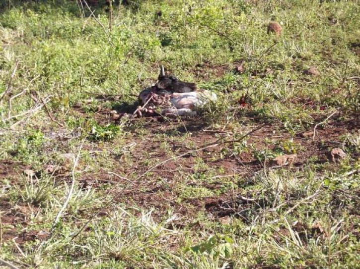 Segundo ele, durante a noite ladrões invadiram a sua propriedade, separaram um boi com aproximadamente, 200 kg, mataram o animal, tiraram parte da carne e deixaram os restos nos fundos de um potreiro, que fica ao lado da casa.