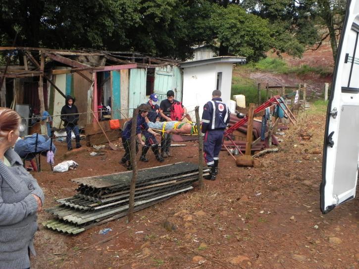 Na manhã desta segunda feira, por volta das 10h45min, o SAMU de Chopinzinho atendeu um caso de queda de telhado. O fato ocorreu no Bairro São Sebastião, onde Rafael de Ramos estava trabalhando na troca da cobertura de um casebre, quando se desequilibrou e caiu.