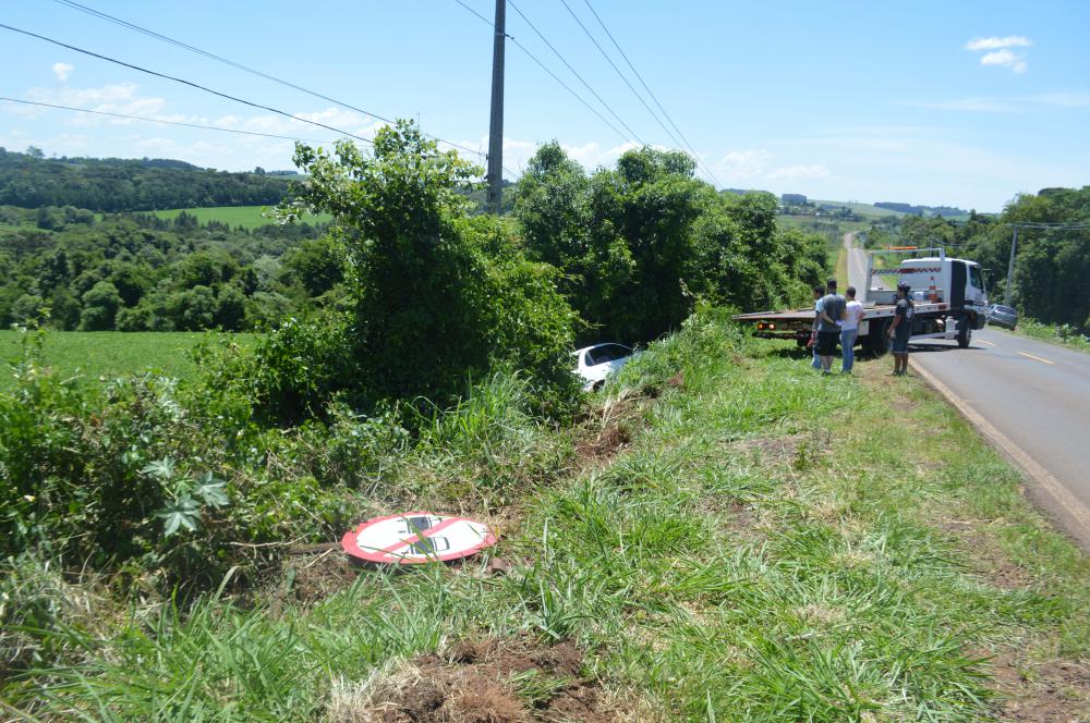 Segundo populares, um veículo Corsa Classic Sedan, placas de Coronel Vivida, ocupada por 4 pessoas, após iniciar uma ultrapassagem perdeu o controle do veiculo, rodando e caindo fora da pista. O condutor e mais dois ocupantes não sofreram ferimentos, uma passageira foi encaminhada ao atendimento médico com ferimentos leve/médio onde segue em observação.