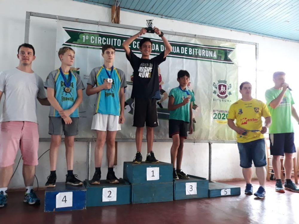 Os atletas Ruan Zago Bueno e André Felipe dos Santos, participaram da 1º Circuito de Corrida de Rua em Bituruna. Ruan participou na categoria de 5 a 6 anos e ficou em primeiro lugar nos 80 metros. André participou na categoria 13 e 14 anos e conquistou o primeiro lugar nos 600 metros.