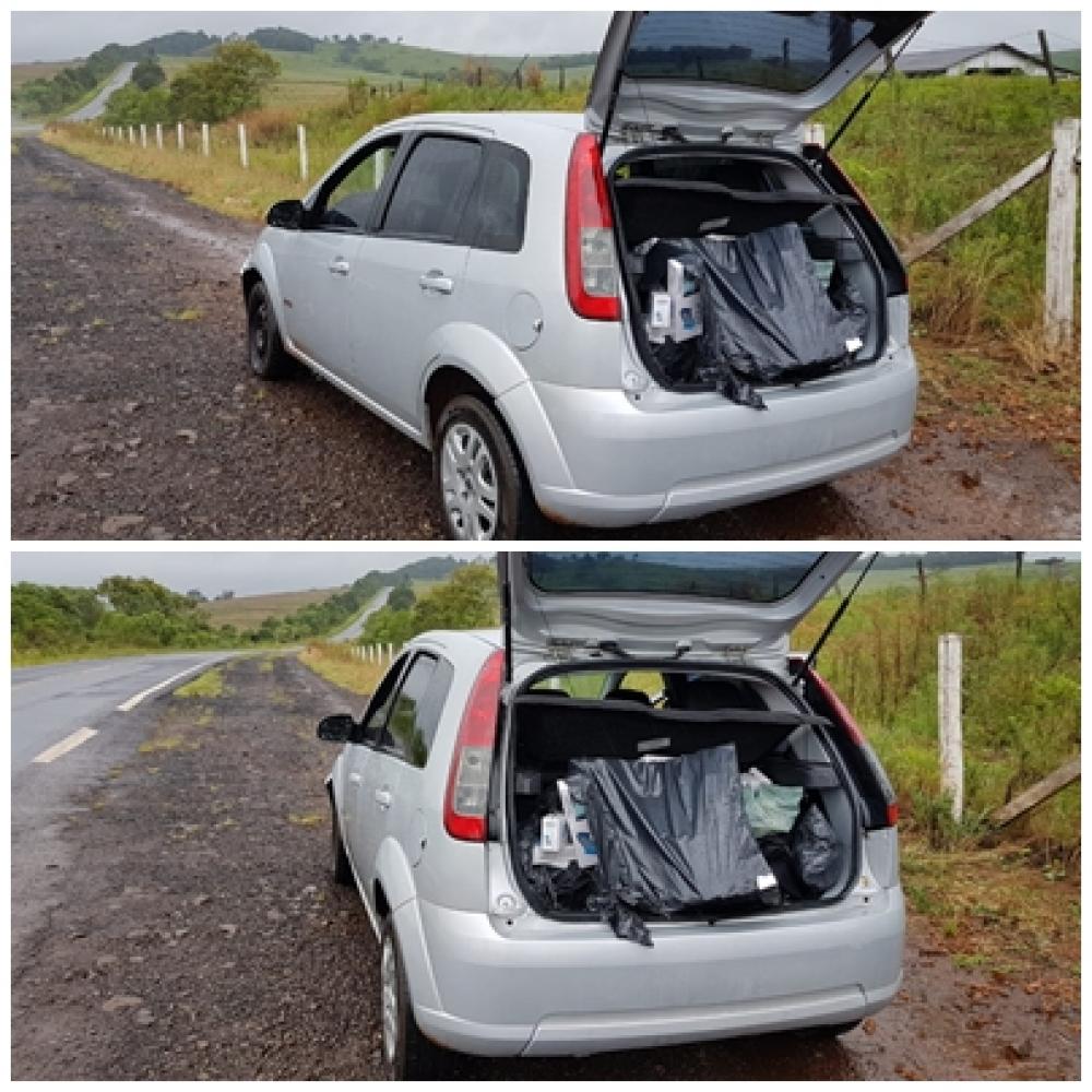 No início da tarde desta sexta-feira, dia 23, uma equipe do 16º Esquadrão Mecanizado de Francisco Beltrão, durante operação de fiscalização na rodovia PR 281, na saída de Chopinzinho para Guarapuava, foi abordado um veículo Ford Fiesta com placas de Curitiba, onde no interior do carro, foi encontrado grande quantidade de cigarro contrabandeado do Paraguai.