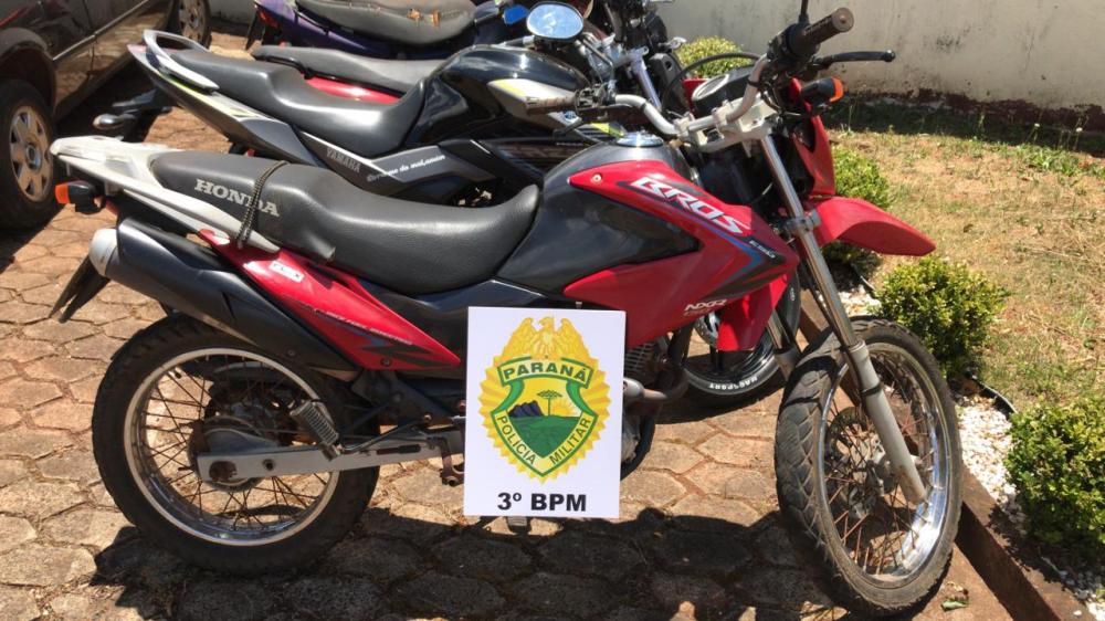 A equipe deslocou até o endereço onde constatou que havia a motocicleta HONDA NXR 150 BROS de cor vermelha placa AUY-7207 de São João, escondida em meio a vegetação às margens da rodovia. Foi constatado que a mesma estava com as chaves e apresentava algumas avarias provavelmente de uma possível queda. Em consulta a placa não foi constatado alerta de roubo/furto, porém os policiais desconfiaram que a mesma tenha sido furtada e o proprietário ainda não tenha percebido o fato.