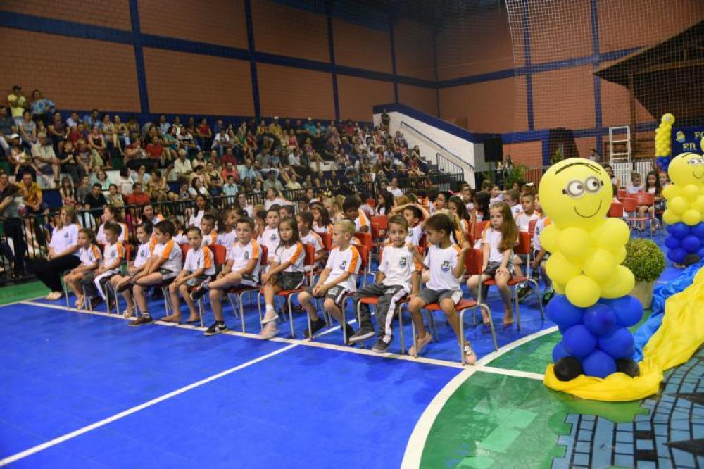 Na noite desta segunda feira, dia 17, aconteceu no Ginásio de Esportes São Silvestre, em Saudade do Iguaçu, a formatura dos alunos do pré 2 da Educação Infantil do Cemei Sonho Encantado e do 5º ano da Escola Municipal Padre Felipe. Ao todo foram 192 crianças das duas escolas que participaram da solenidade com a presença de familiares e professores.