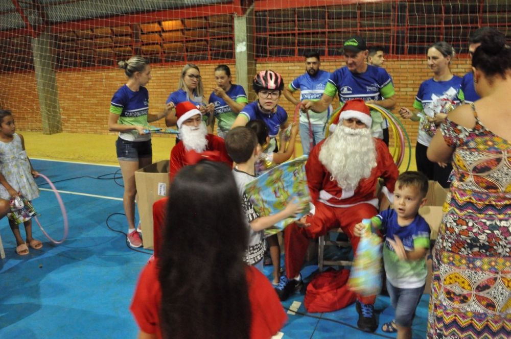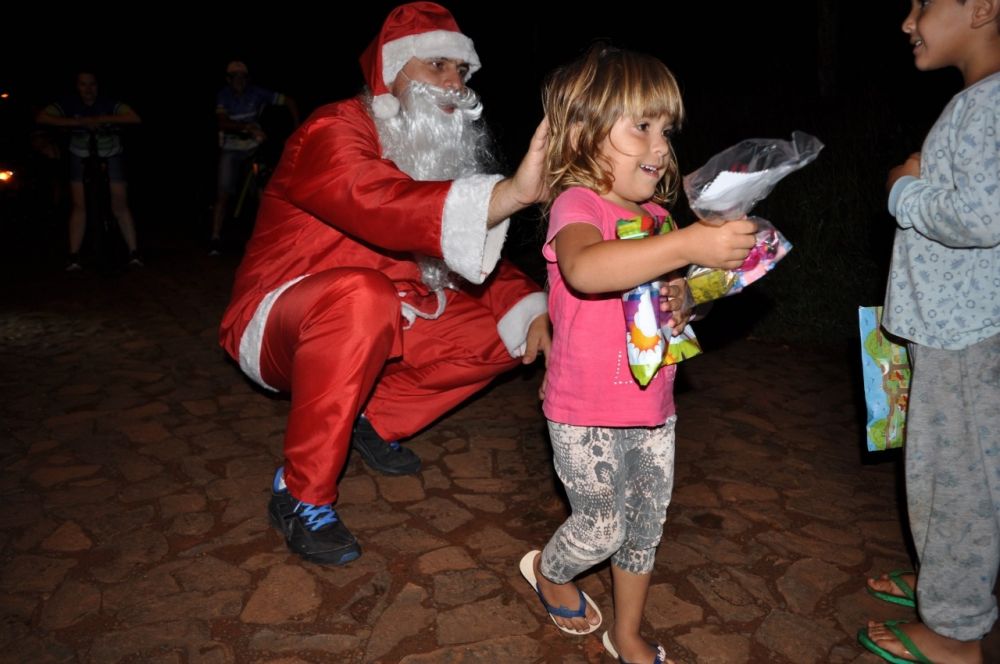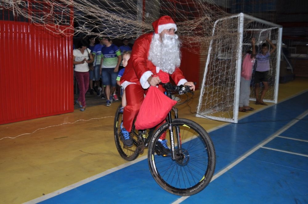 Inicialmente a o Papai Noel Ciclista, fez a entrega dos presentes às 20h30min, após as apresentações do projeto “presépio VIVO”, no bairro são Cristóvão, e na sequência, passou pelas residências nos bairros, atendendo as crianças de acordo com uma lista fornecida pela diretoria da Assistência Social do Município.