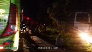 O ônibus seguia de lages com destino a Foz do Iguaçu e o caminhão sentido contrário, quando ocorreu a colisão.