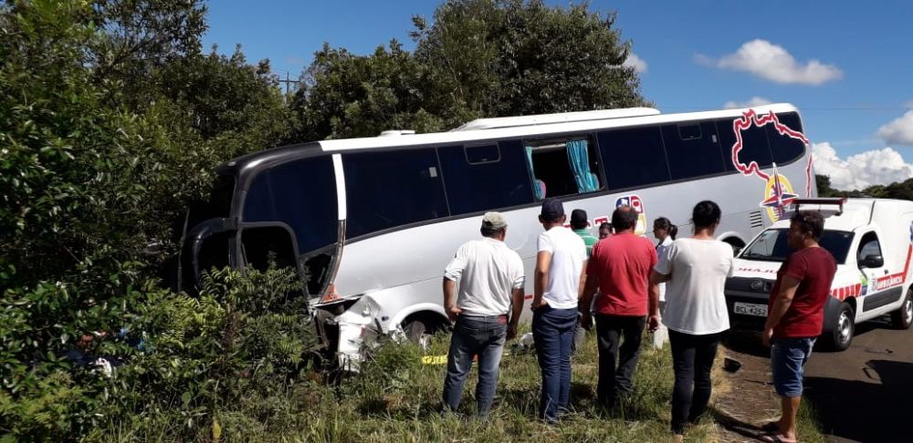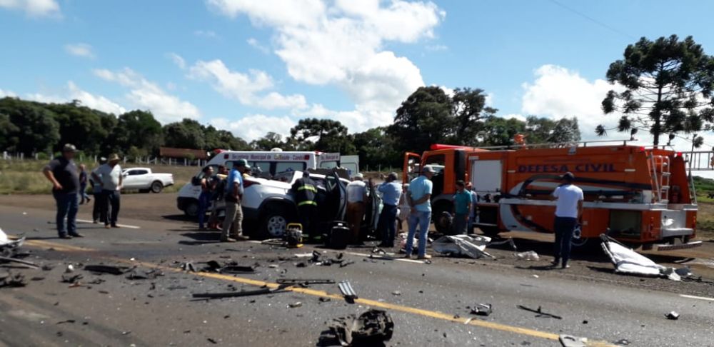 A colisão envolveu uma Fiat/Toro com placas de Dois Vizinhos que vinha sentido ao Sudoeste e um ônibus de Salto do Lontra que fazia o sentido contrário.
