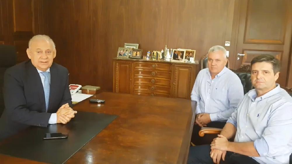 Legenda: Deputado Ademar Traiano confirmou agenda da Copel durante encontro com o prefeito de Sulina, Paulo Horn, e o presidente da Amsop, Mauro Cenci.