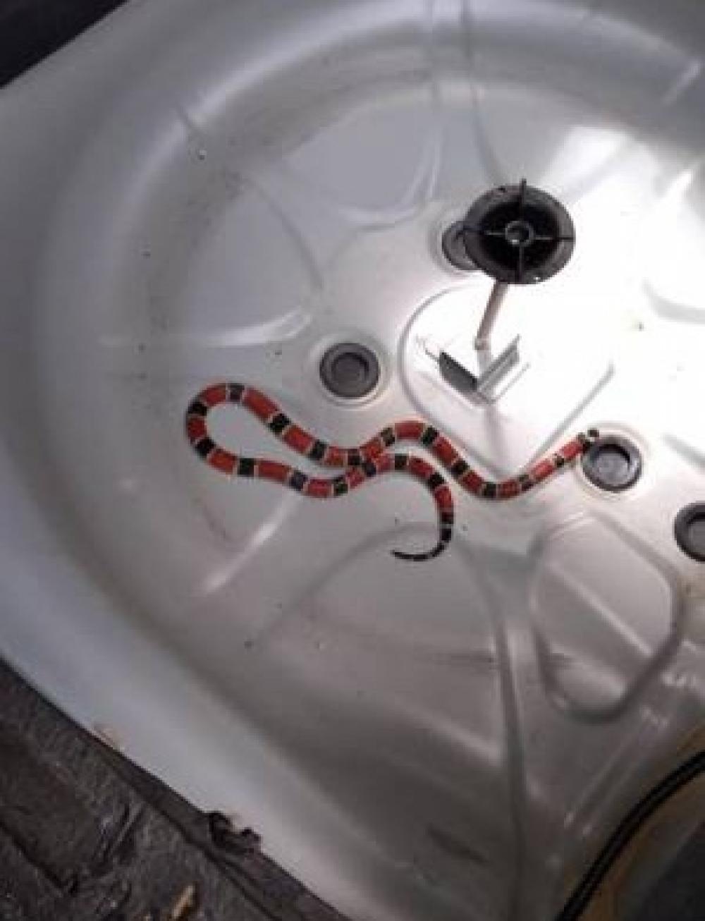 Uma cobra coral foi encontrada dentro de um carro em Ampére na quarta-feira (20). A cobra estava no compartimento onde fica o pneu estepe no bagageiro do veículo.