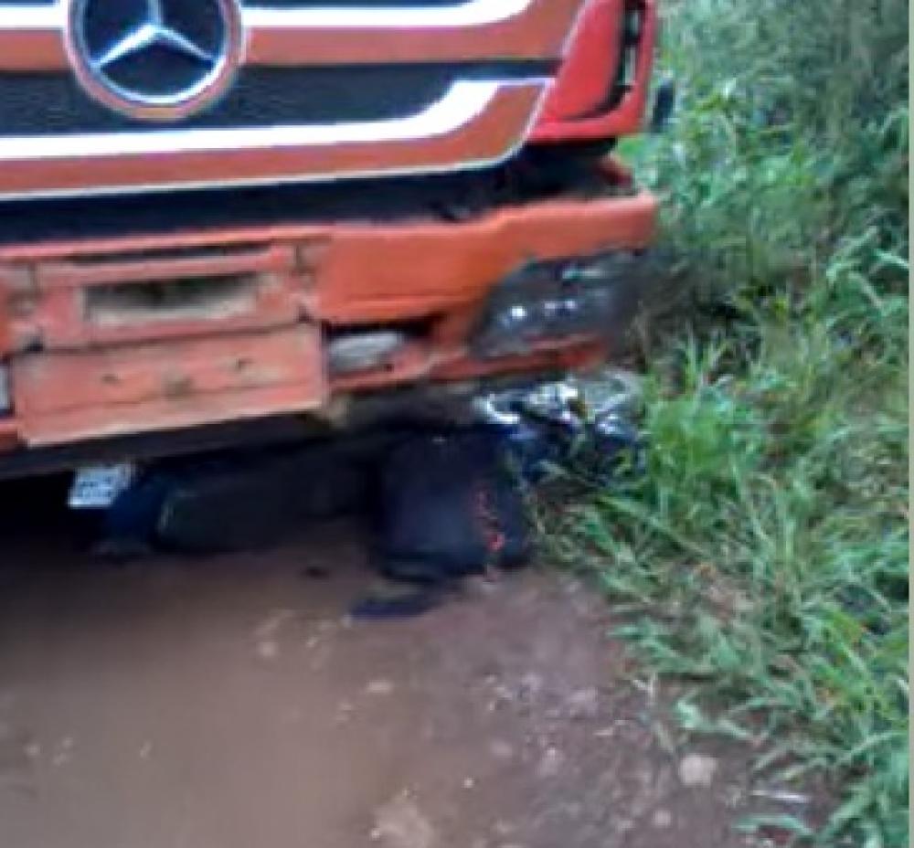 Segundo o que foi apurado, o acidente ocorreu numa curva e o condutor da motocicleta bateu na lateral do caminhão.