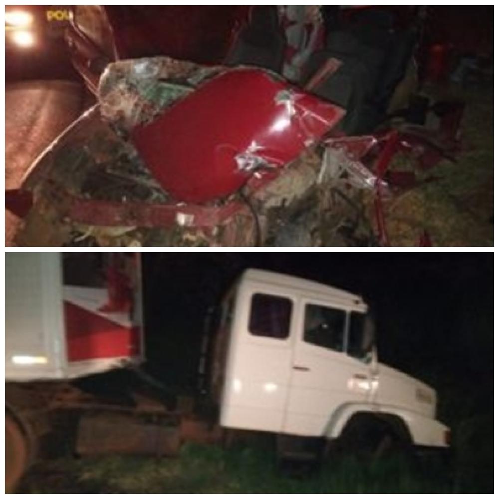 A colisão frontal ocorreu por volta das 21h30 e envolveu um GM/Celta de Ampére e um caminhão Mercedes-Benz / LS 1941 com placas de Marechal Cândido Rondon.