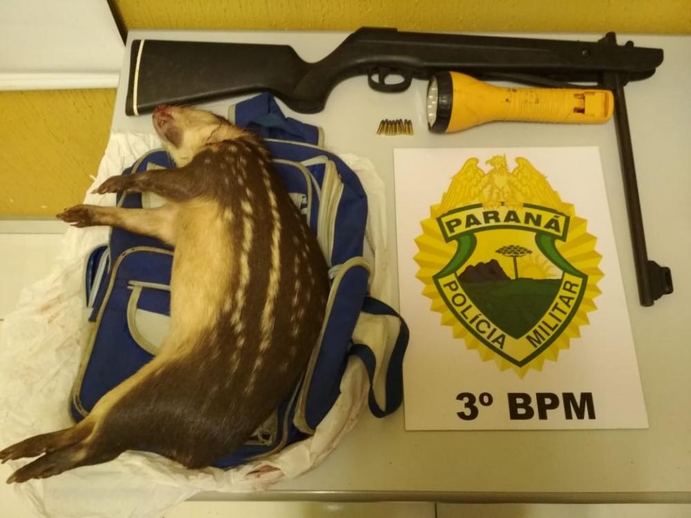 Após o termino da confecção da documentação foram entregues os envolvidos juntamente com a arma e o animal abatido na delegacia de Pato Branco para os devidos procedimentos.