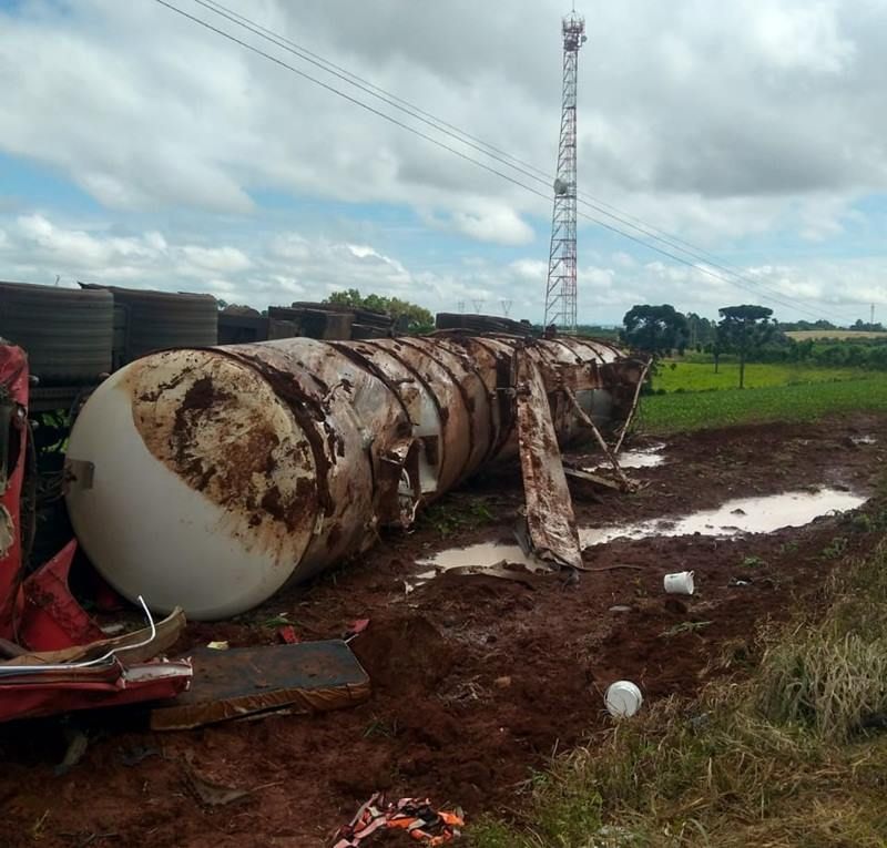 O acidente aconteceu próximo ao trevo de acesso para o Distrito de Sede Paranhos e envolveu um caminhão tanque placas de São Lourenço do Oeste, o qual tombou na rodovia e o condutor ficou preso nas ferragens e morreu na hora.