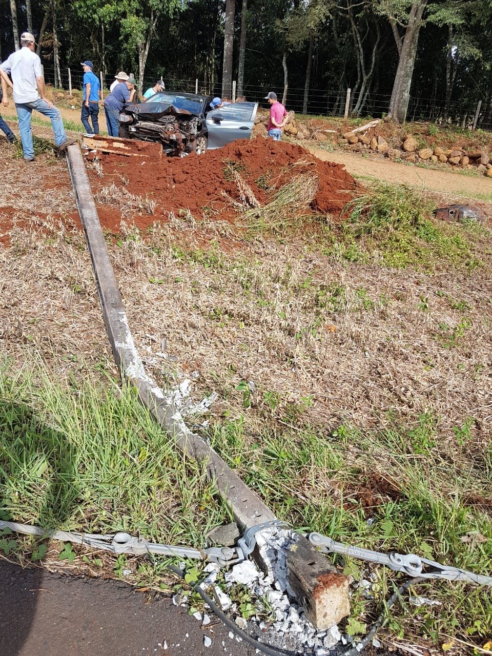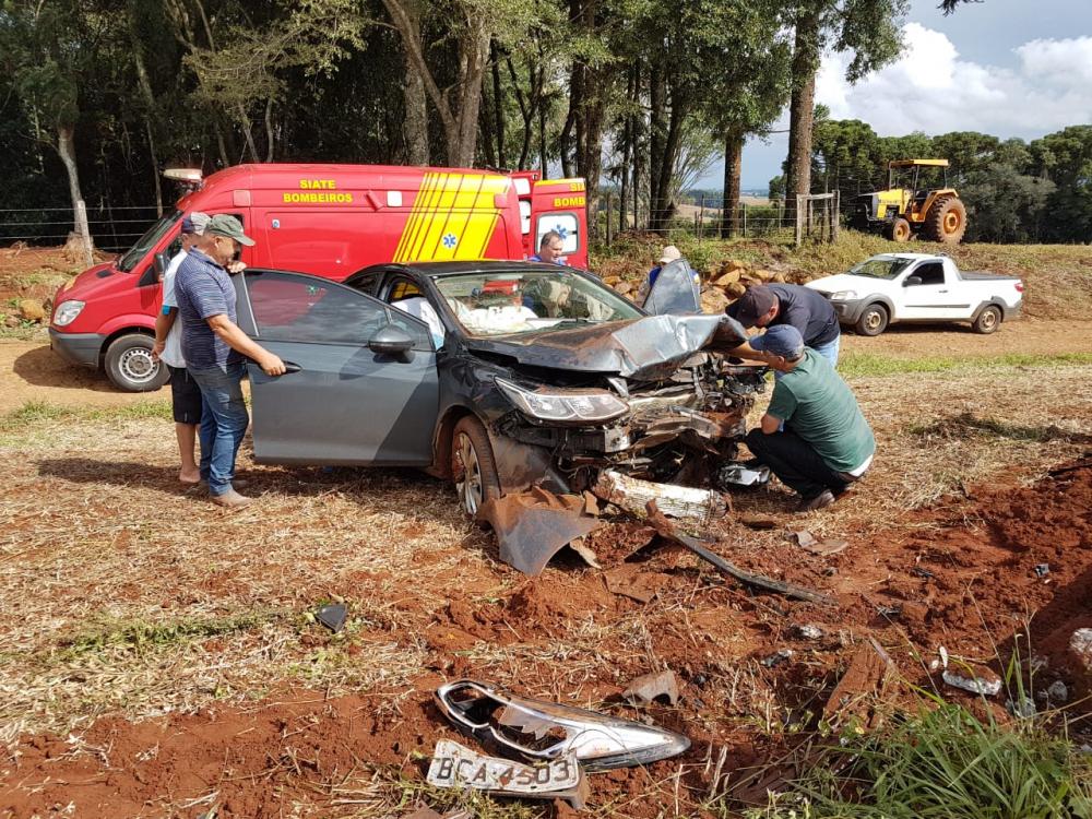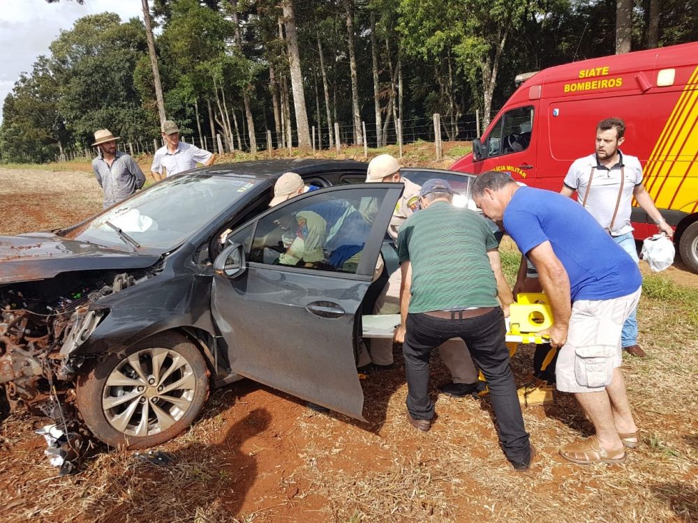 Populares disseram que a condutora estava consciente e se queixava de muitas dores no braço e nas costas. Com a chegada da ambulância do Corpo de Bombeiros, foi constatado que ela teve fratura no braço esquerdo. Evelaine estava consciente e foi encaminhada para a UPA em Coronel Vivida. O carro ficou totalmente destruído.