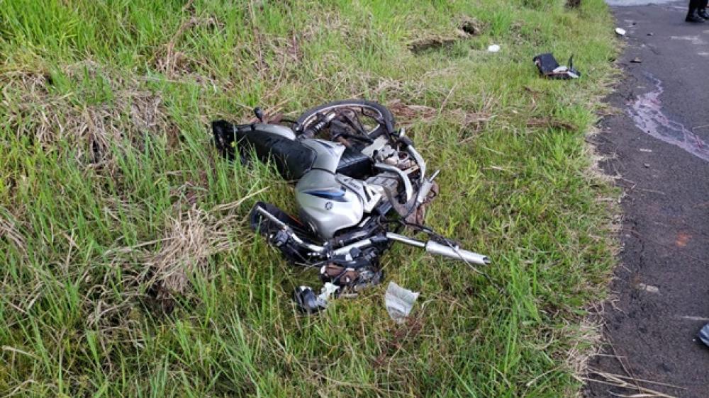 A colisão foi entre um caminhão com placas de Pinhal de São Bento que seguia sentido a Ampére e uma motocicleta que trafegava no sentido contrário.