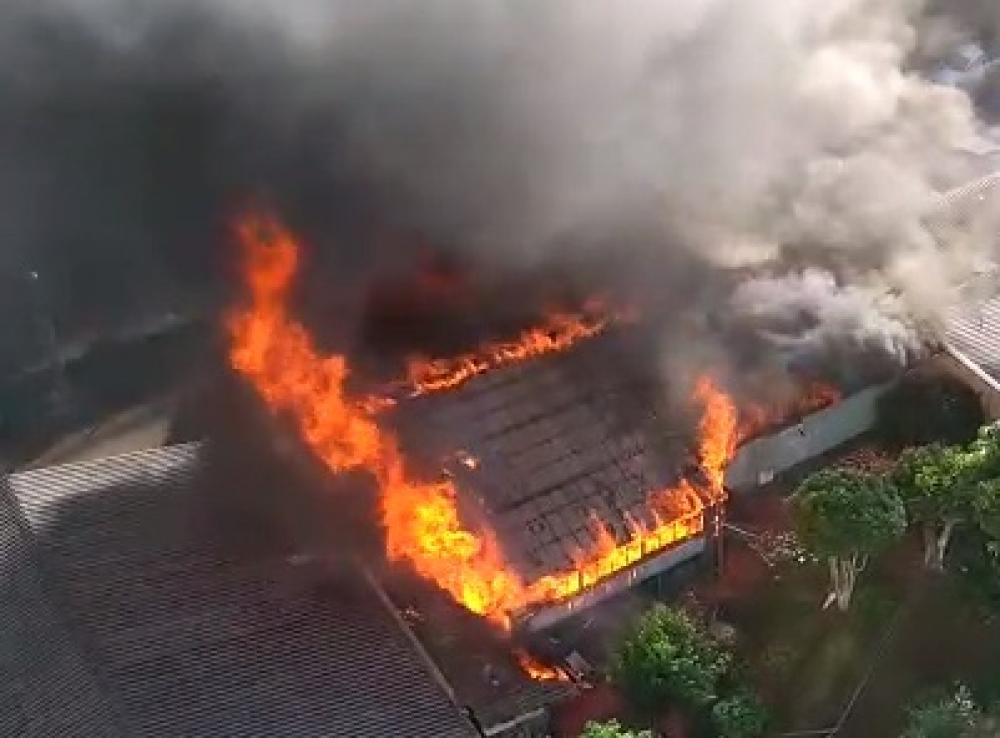 Um incêndio de grandes proporções destruiu uma residência de madeira na manhã desta quinta-feira (28) no centro de Pato Branco.