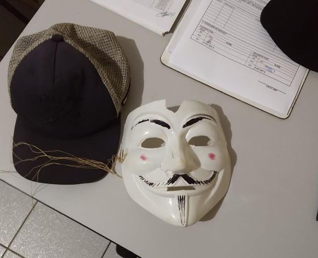 Ao fazer buscas dentro do estabelecimento os policiais encontraram uma máscara usada pelos indivíduos nos fundos do local e foram informados de quem seria o dono de tal objeto.