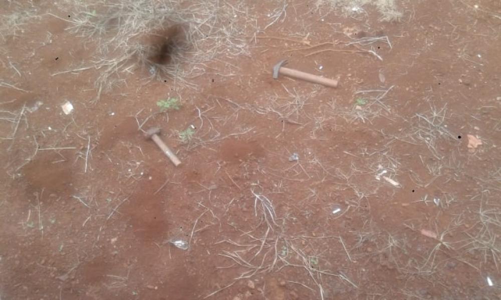 Em seguida a Polícia foi até a rua Borges de Medeiros, na residência onde ocorreram os fatos e verificaram que tinha uma marreta e um martelo na parte externa da residência, ambos com sangue. Foi então feito a apreensão dos objetos e entregue na polícia civil de Cantagalo.