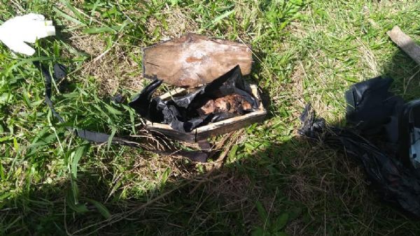 A Polícia e o IML foram acionados para recolher o recipiente para realizar exames para identificar o que teria no interior desse caixãozinho. Após exames, foi constatado de que dentro da urna funerária tinha carne bovina, pimentas e pregos. Não há informações de quem tenha deixado o caixão no local. O caso está sendo investigado.