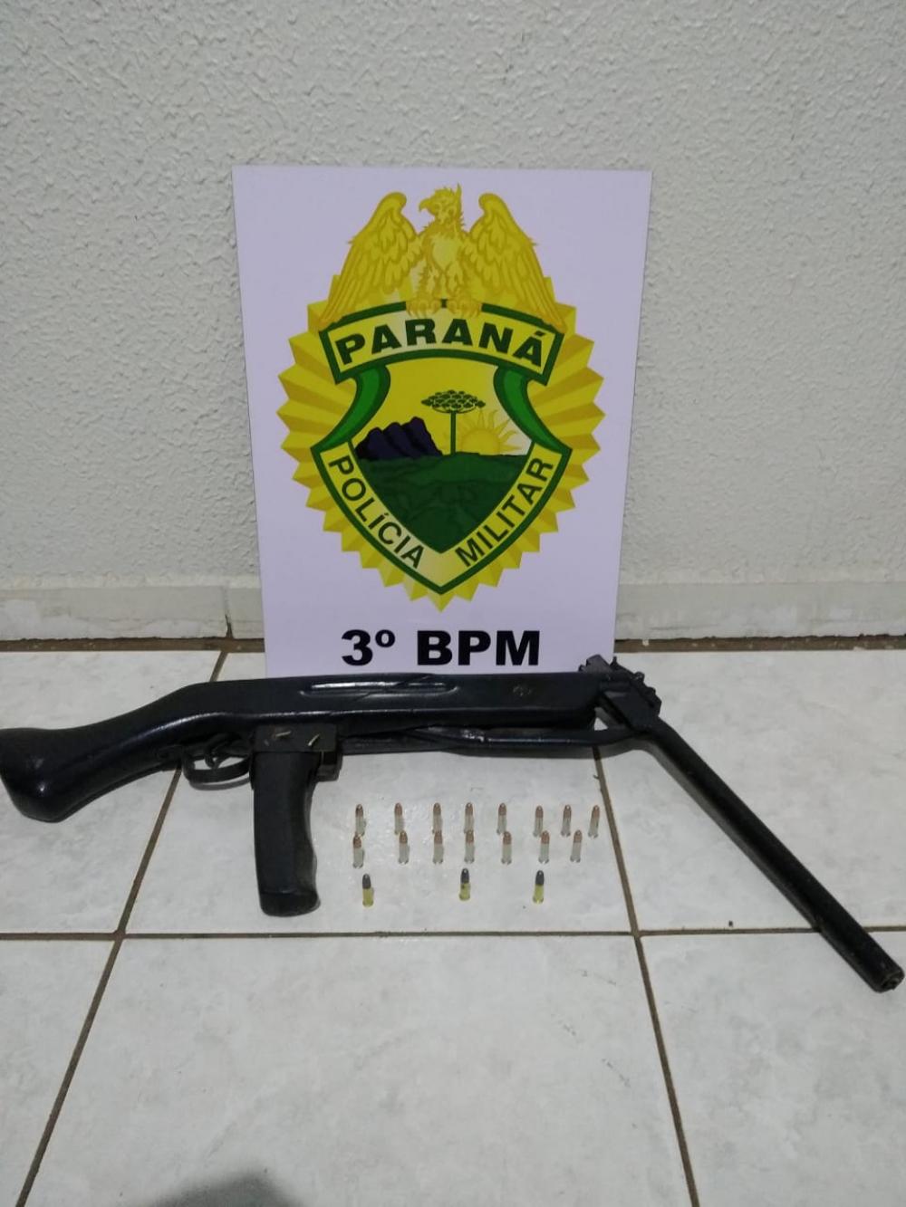 Logo depois, em revista no veículo, foi localizado sobre o tapete do passageiro dianteiro uma arma de fabricação artesanal de cor preta calibre .22; também foi localizado debaixo do mesmo tapete 3 munições calibre .22 de marca CBC intactas e 14 munições calibre .22 marca indefinida intactas. O caroneiro assumiu ser de sua propriedade a arma e as munições.