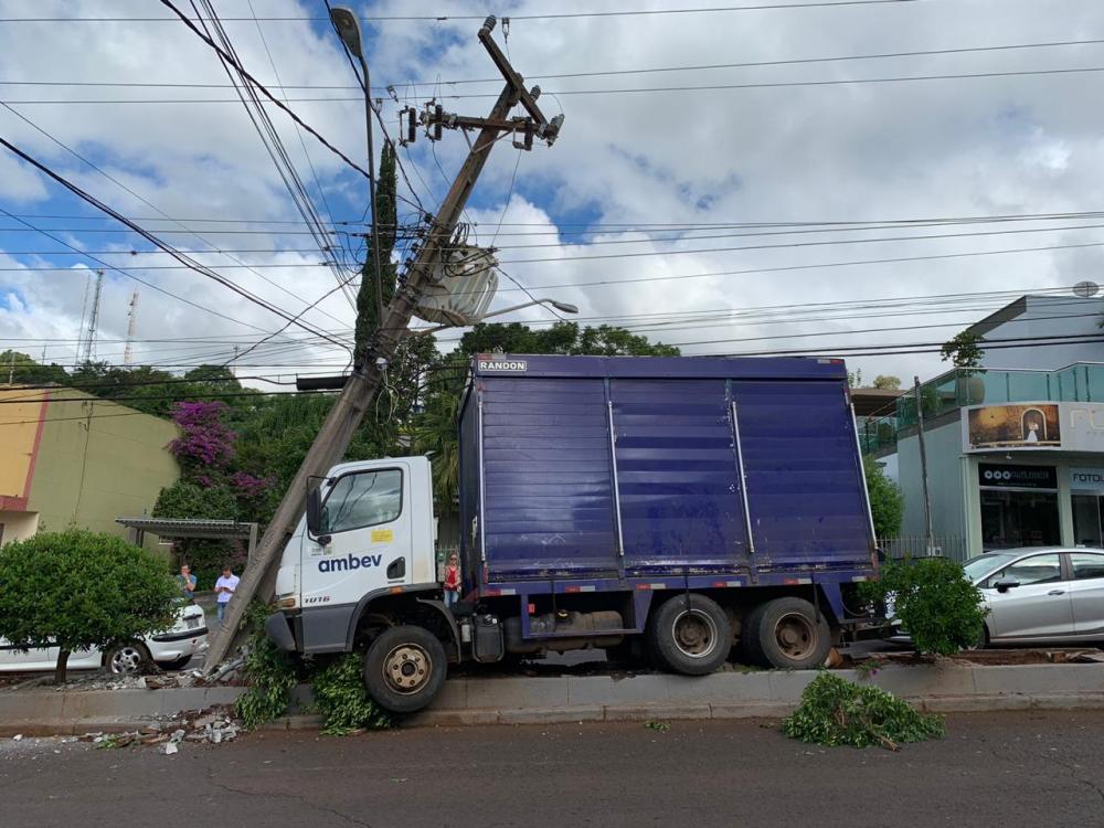 Na tarde desta quinta feira (02) por volta das 13h50min um caminhão da empresa AMBEV de Francisco Beltrão parou em frente ao posto da XV para fazer a entrega de bebidas, no momento em que o caminhão sem o motorista desandou seguindo rumo avenida XV de Novembro o qual andou cerca de 50 metros e colidiu com um poste em frente ao SICREDI deixando parte de Chopinzinho sem energia elétrica.