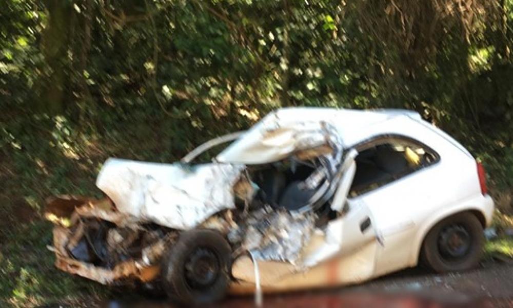 A colisão frontal envolveu um automóvel GM/Corsa de Salto do Lontra e um caminhão com placas de São João. O condutor do carro Claudiomiro Gonçalves, 39 anos, morreu no local.