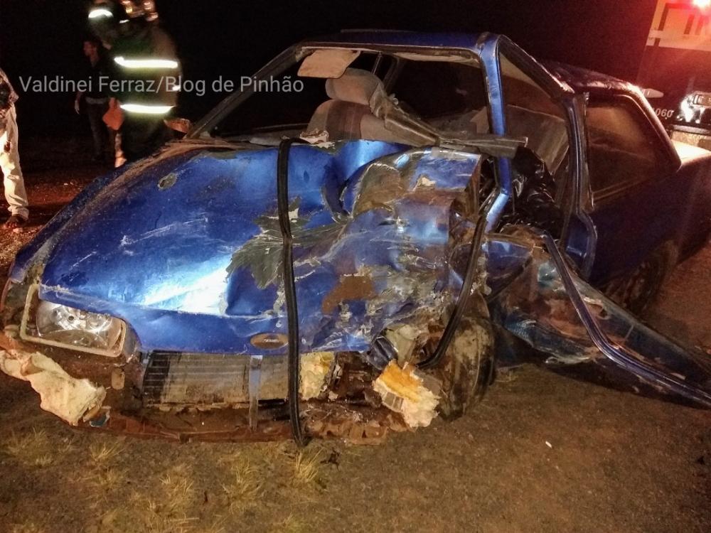 Populares informaram que o veículo azul, seguia sentido Faxinal do Céu - Pinhão estava em alta velocidade e acabou invadindo a pista contrária atingindo em cheio outro veículo.