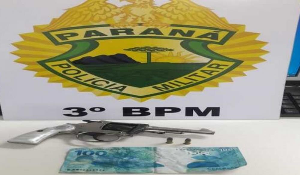 A Equipe da Polícia Militar de São João foi abordada por um popular, o qual não quis se identificar, mas informou que instantes antes dois indivíduos, utilizando um gol bordô, estavam em via pública exigindo dinheiro de pedestres, utilizando uma arma de fogo. Informou também que estes queriam dinheiro para abastecer o veículo. Foi efetuado patrulhamento na região central de São João e deslocado até um posto de combustíveis, indagado um senhor se algum gol bordô havia abastecido naquele local, este informou que tal veículo havia abastecido há menos de cinco minutos e deslocado sentido Chopinzinho. Ainda, segundo o senhor, os dois indivíduos ocupantes do veículo informaram que iriam para a casa noturna em Chopinzinho. Foi deslocado imediatamente sentido Chopinzinho, sendo informada a equipe policial deste município, a qual veio em sentido contrário para tentar localizar o veículo informado na denúncia. Foi visualizado por ambas as equipes que o veículo VW/Gol, de cor bordô, estava estacionado no pátio da boate “Doce Pecado”, sendo dada voz de abordagem a todos os ocupantes do estabelecimento. Foi verificado inicialmente que havia apenas dois clientes da boate, sendo os demais funcionários do local. Em busca pessoal em um dos abordados, foi localizado um revólver, calibre 22, com duas munições intactas, o qual recebeu voz de prisão pelo crime de porte ilegal de arma de fogo, informado de seus direitos constitucionais, algemado, para preservar a integridade física da equipe policial, do mesmo, e de terceiros e encaminhado ao Pelotão da Polícia Militar de Chopinzinho para o procedimento policial. Com o outro abordado não foi localizado nada de ilícito, porém este não portava nenhum documento pessoal e, ante o seu estado avançado de embriaguez (nervosismo, fala enrolada, forte odor etílico), também foi encaminhado ao Pelotão da PM de Chopinzinho para identificação. Ambos informaram residir no município de São João. Em nova busca pessoal realizada no interior do pelotão de Chopinzinho, foi localizada no bolso da calça de um uma nota falsa de R$ 100,00 (cem reais), sendo esta apreendida e encaminhada juntamente com a arma de fogo e o autor dos crimes à delegacia de polícia civil de Pato Branco, para as providências. O veículo utilizado por ambos foi encaminhado ao Pelotão Polícia Militar.