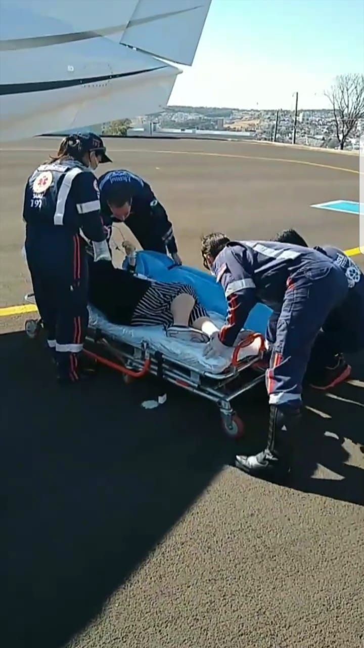 Anieli estava internada no Hospital São Lucas de Pato Branco desde a última quarta-feira, aguardando a transferência que foi feita na manhã de hoje, onde uma equipe do SAMU encaminhou ela até o aeroporto de Pato Branco, onde a aeronave aguardava.